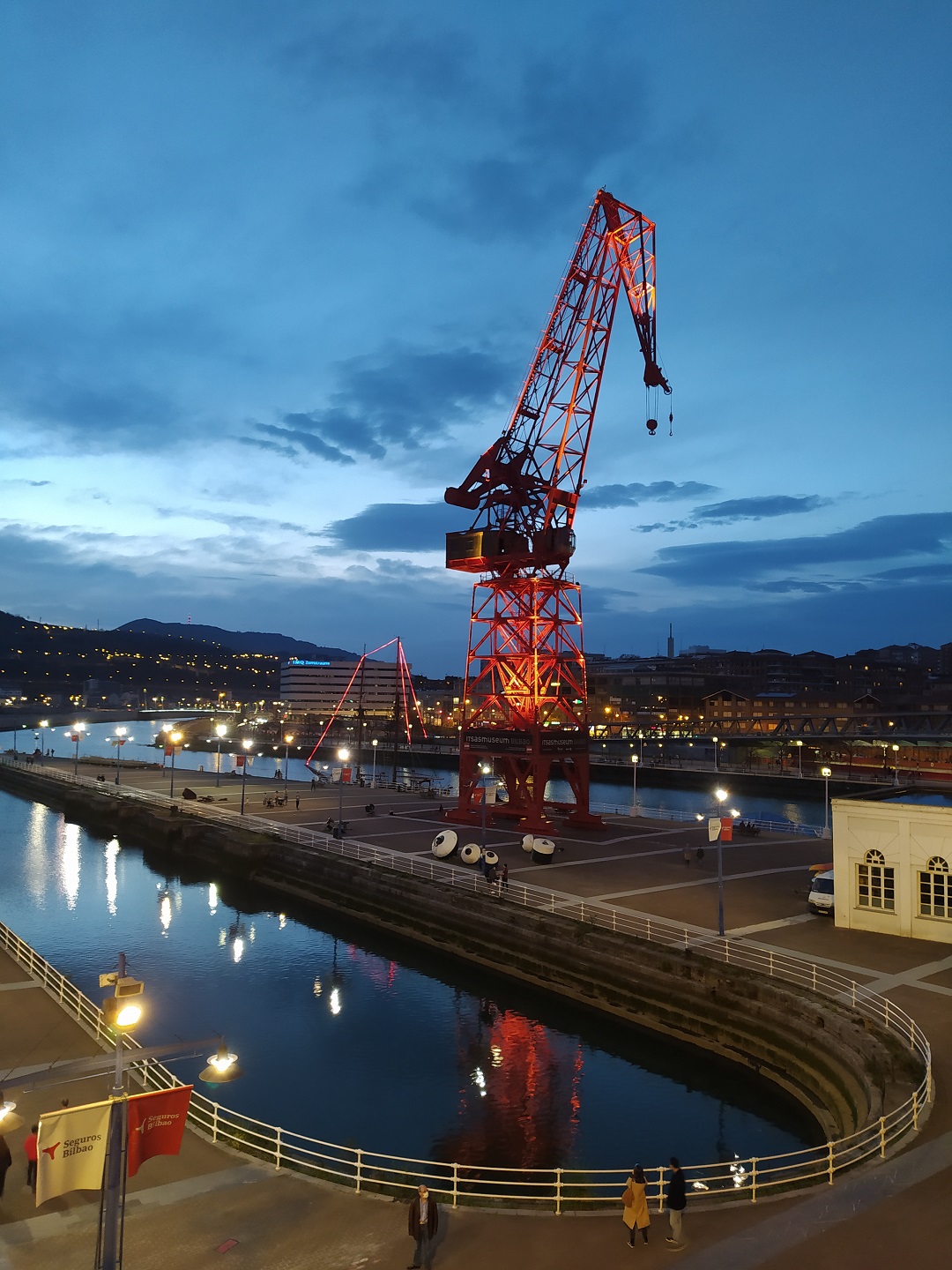 explanada de Itsasmuseum junto a la Ría en Bilbao, y la famosa grúa Carola