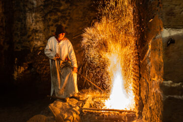 Los sábados de julio, el fuego vuelve a prender en la ferrería. Los visitantes pueden ver en directo cómo el agua mueve el martillo, cómo chispean las brasas y cómo se forja el hierro como hace siglos.