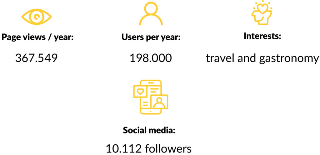 Our followers include regional tourism bodies, tour guides and journalists and bloggers interested in travel and gastronomy. Do you want to appear on our website and publicise the experiences or activities offered by your tourist agency or business?